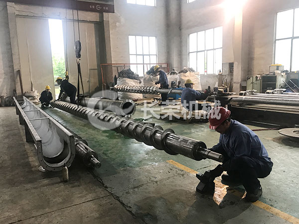 鈦材螺旋輸送機(jī)的焊接與其他黑鐵和不銹鋼螺旋輸送機(jī)的焊接工藝有所不同。鈦材的焊接需要高純度氬氣,使用直流氬弧焊并在2-3人的協(xié)助下完成焊接。圖片中的鈦材螺旋機(jī)用于輸送硫酸銨以及鎳鈷錳三元電池材料。常用于農(nóng)藥化工和電池材料行業(yè)。